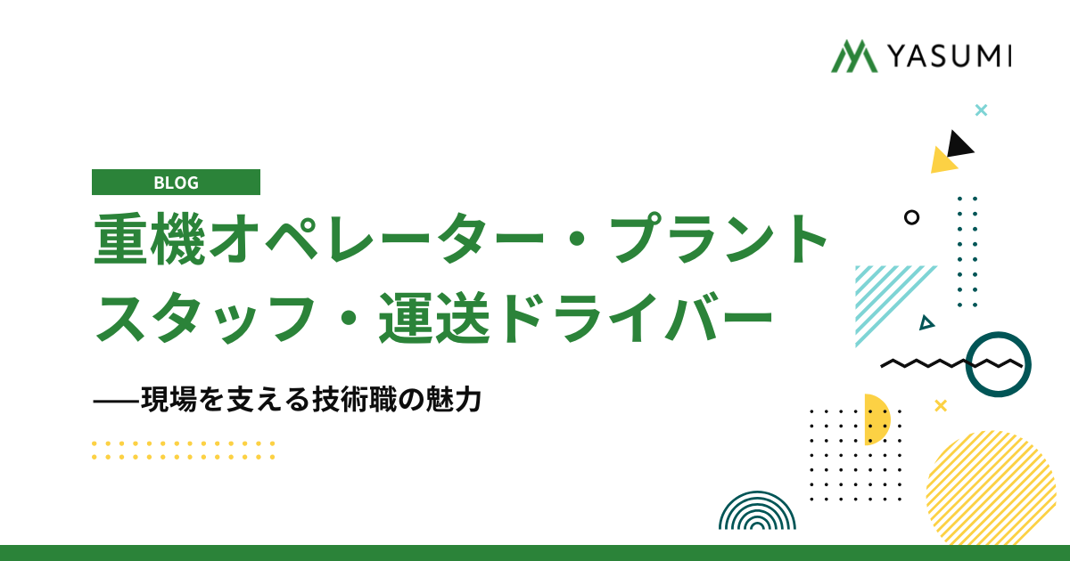 重機オペレーター・プラントスタッフ・運送ドライバー——現場を支える技術職の魅力